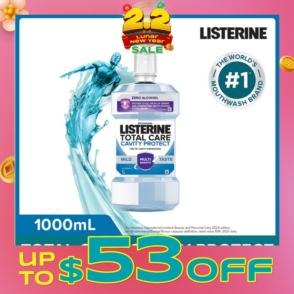 LISTERINE Total Care Cavity Protect Mild Mouthwash (Alcohol-Free) 1000ml