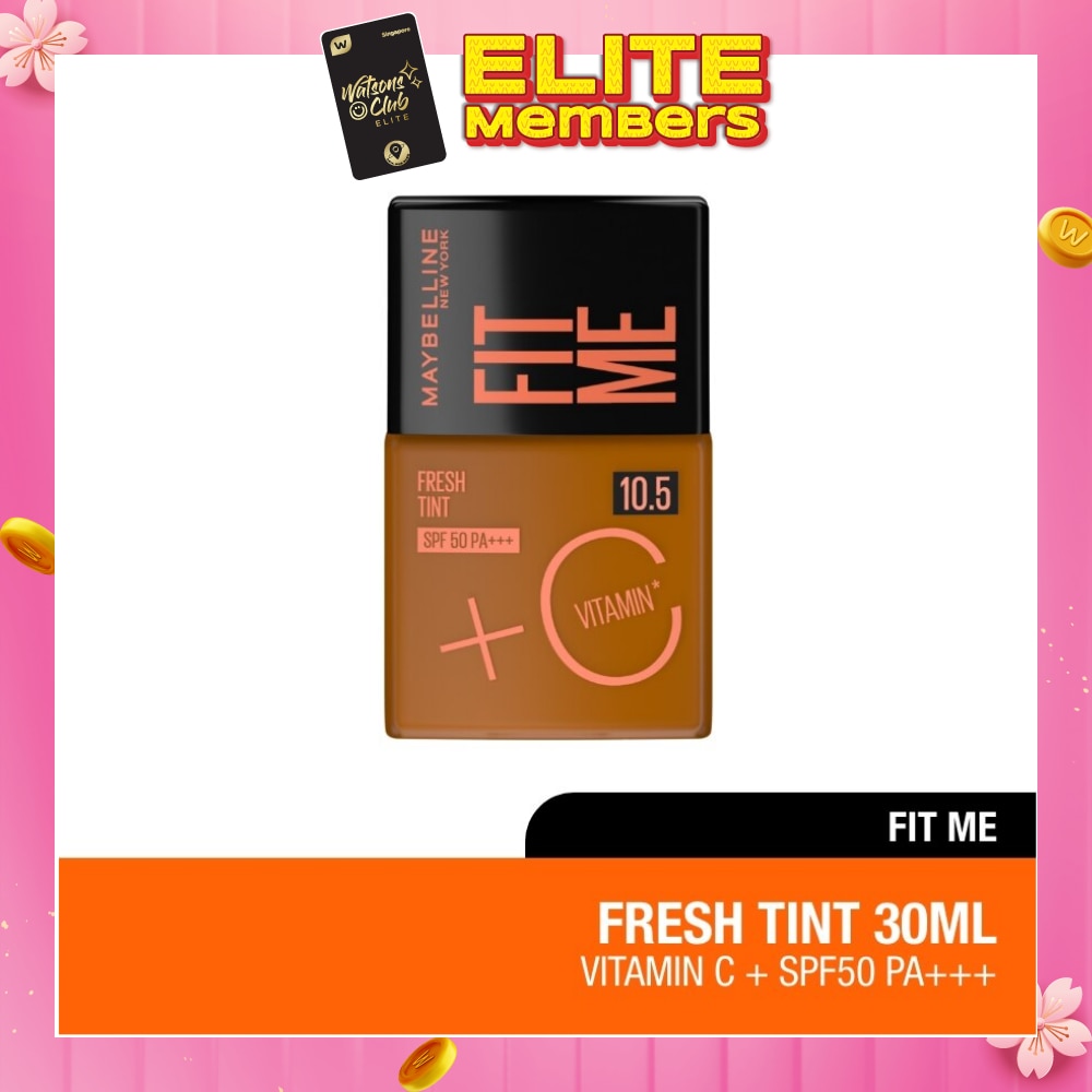 Say hello to the all-new makeup tint + skincare: MAYBELLINE Fit Me Fresh Tint 30ML for instant fresh and bright skin with light-natural coverage. With Vitamin C-infused formula that brightens, SPF 50 PA+++ that protects skin from sun, and Fit Me's kind-to-skin dermatologically tested formula, Fit Me Fresh Tint is suitable for sensitive, oily and combination skin. Fit Me Fresh Tint brightens, protects and evens skin.