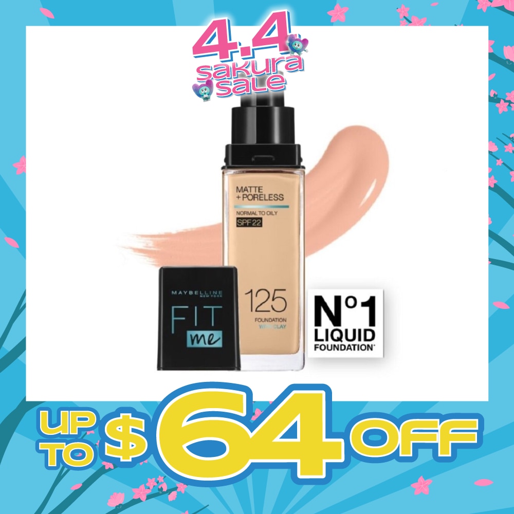 Fit Me Matte + Poreless Foundation face makeup. Mattifies, refines pores and leaves a natural, seamless finish. Same natural weightless matte texture, now improved with SPF 22.