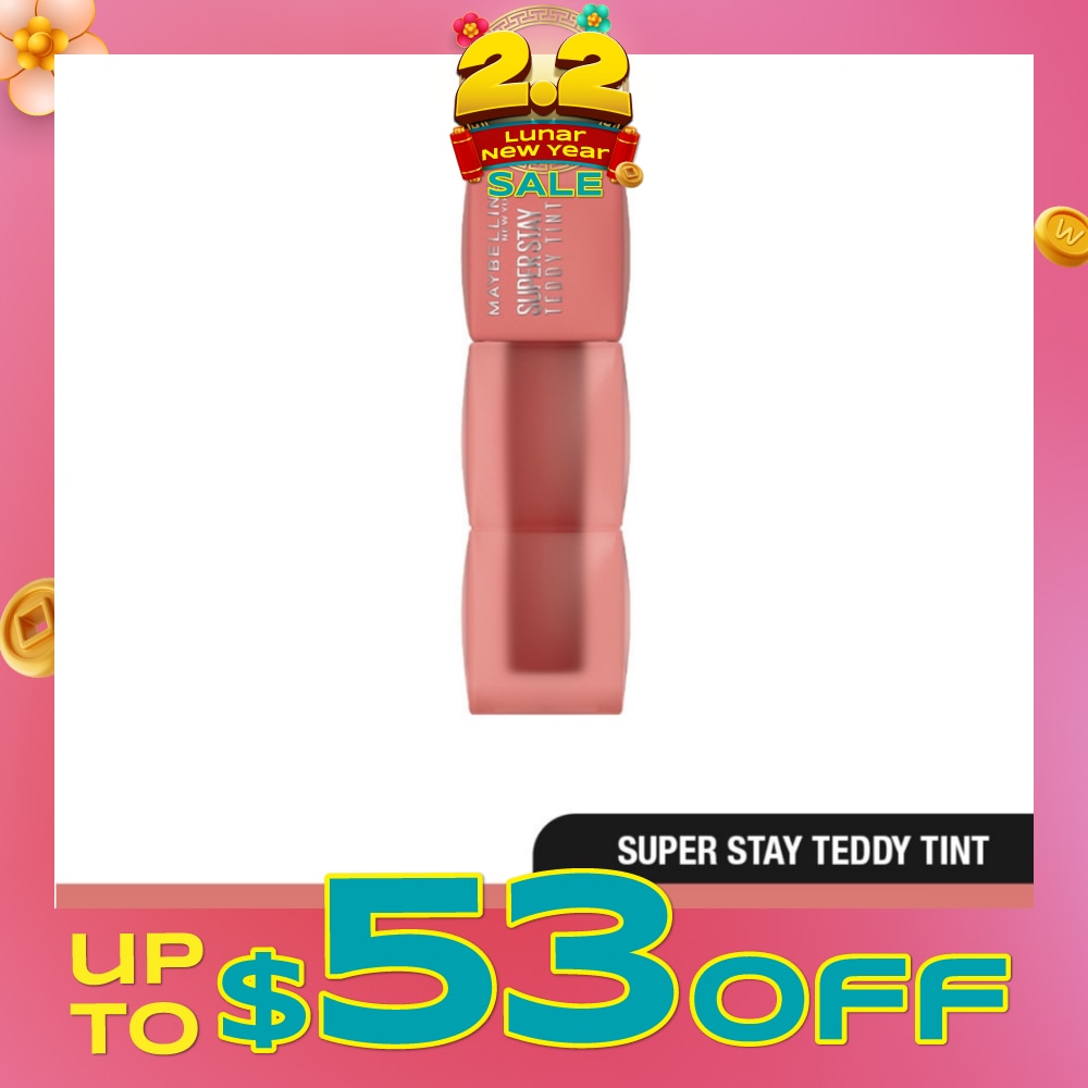 NEW Maybelline Super Stay Teddy Tint - the only lip tint that lasts for 12 hours! With Marshmellow Bouncy Elastomer and Color Hugging Flexi Film technology, Super Stay Teddy Tint gives you transfer-proof, waterproof, and plush comfort on your lips ALL DAY. 10 new buildable shades for your lips and cheek, gives your soft matte look in just 1 swipe. Teddy, set, GO!
