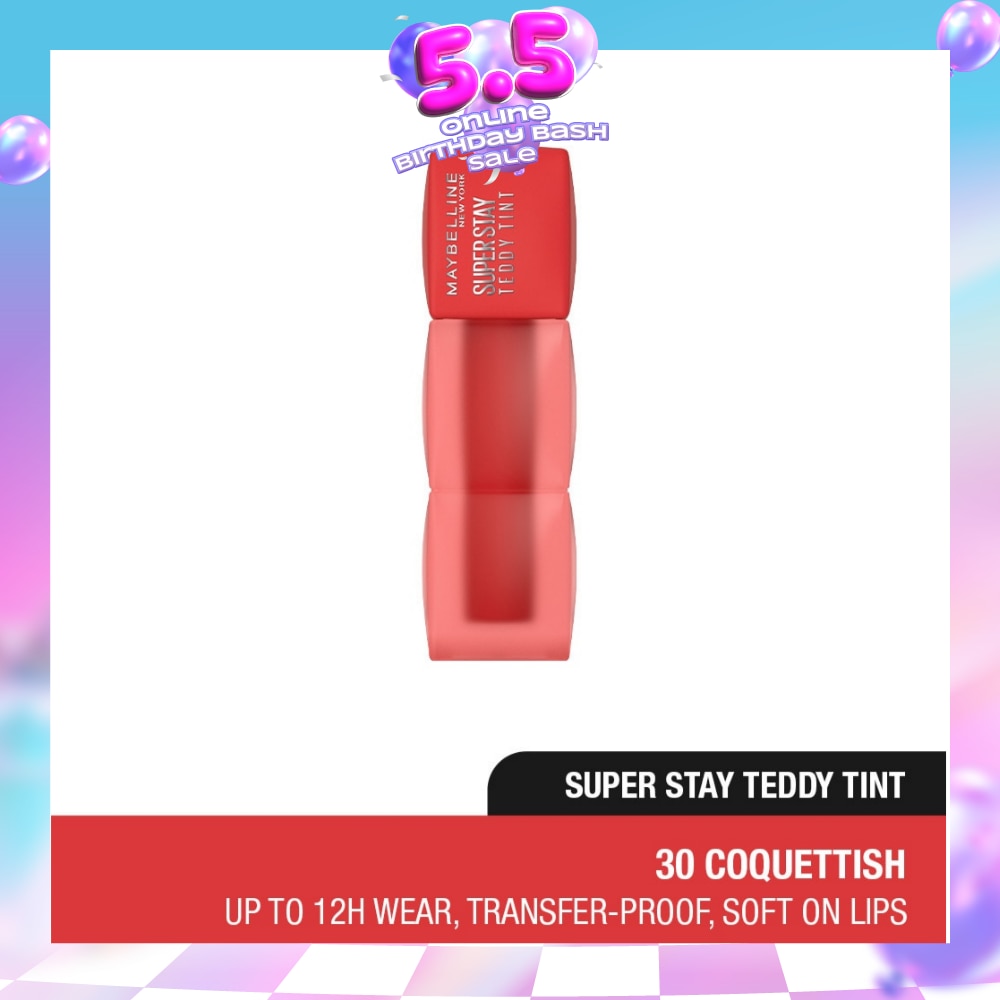 NEW Maybelline Super Stay Teddy Tint - the only lip tint that lasts for 12 hours! With Marshmellow Bouncy Elastomer and Color Hugging Flexi Film technology, Super Stay Teddy Tint gives you transfer-proof, waterproof, and plush comfort on your lips ALL DAY. 10 new buildable shades for your lips and cheek, gives your soft matte look in just 1 swipe. Teddy, set, GO!