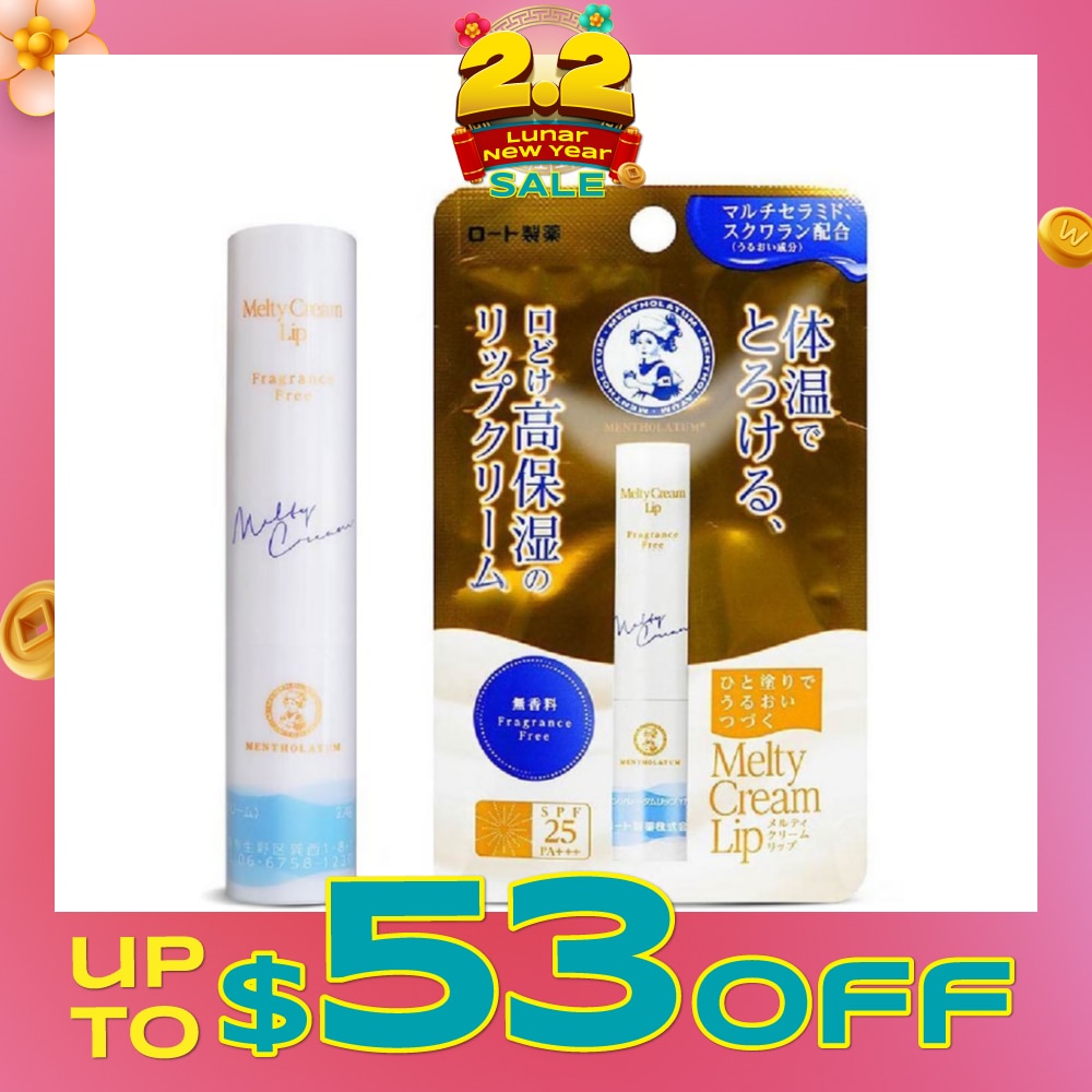 Melty Cream Lip Fragrance Free (Highest Grade Moisturisation + UV Protection + Hydrating & Nourishin + Contains Multi Caramide) 2.4g (Expiry: Sep`2026)