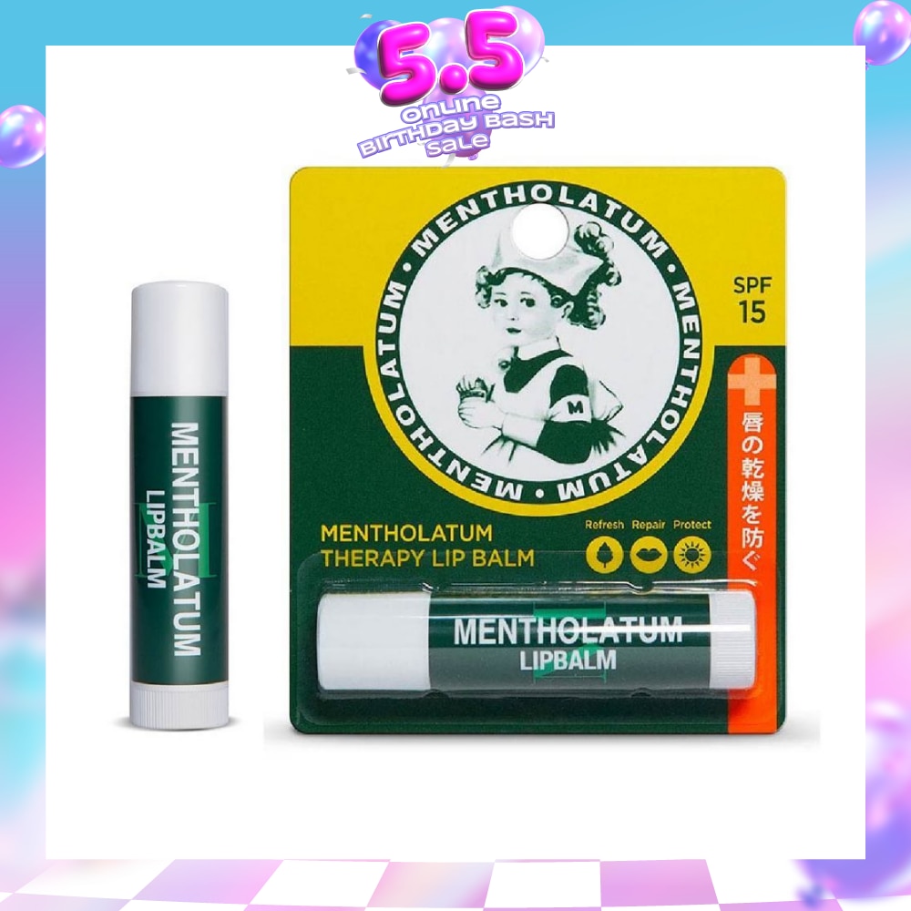 Mentholatum Therapy Lip Balm helps repair and protect dry chapped lips, has a SPF15 coverage to keep the lips moist and protect against harmful ultraviolet rays from the sun. Contains camphor for effective healing against dry, chapped and windburned lips. Relieves soreness and burning caused by sun, wind and harsh weather. Menthol provides cooling and refreshing feel to lips.