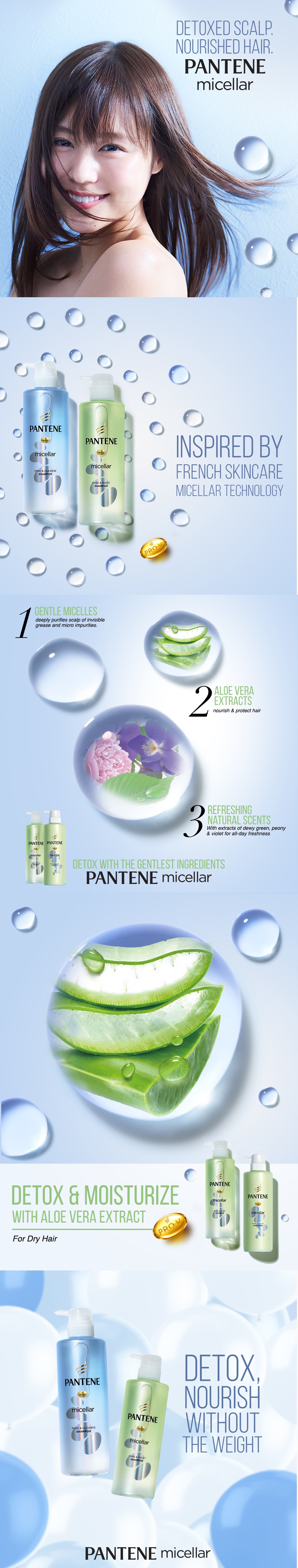 Pantene Micellar series Pure & Moist. Introducing `micellar series', inspired by skincare technology.