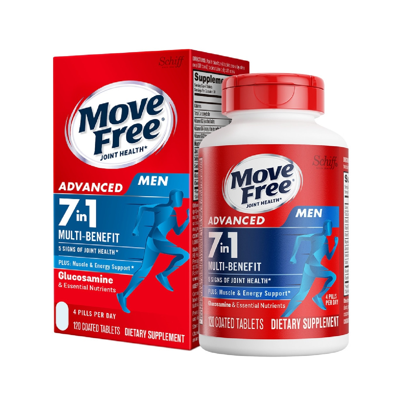 MoveFree Advanced 7in1 Men is formulated from the ground up to provide men with Glucosamine and essential nutrients needed to support the following benefits: Muscle, Energy, Flexibility, Bone, Strength, Comfort, Mobility