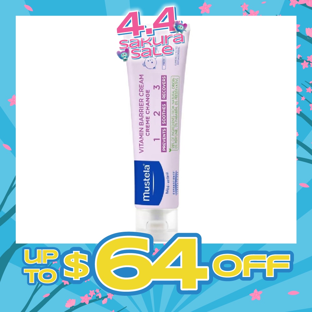 Mustela Vitamin Barrier Cream is specially formulated to prevent, relieve and repair baby's skin from diaper rash. It's easy to apply and clean off, and is suitable for daily use. Three-fold effectiveness:
