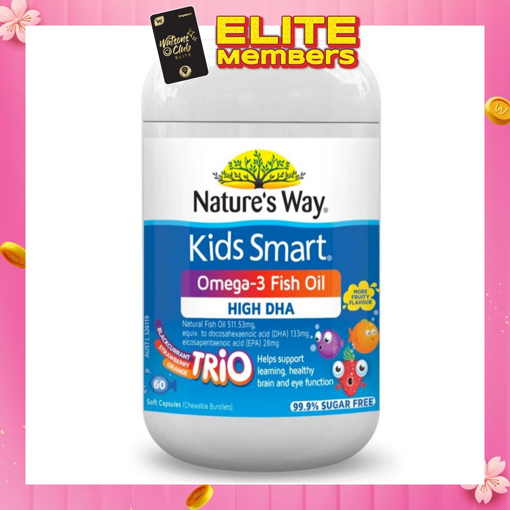 Nature’s Way Kids Smart Omega-3 Fish Oil Trio 180S is the delicious chewable burstlet that is packed with omega-3. It comes in a fun chewable capsule that bursts in their mouth!