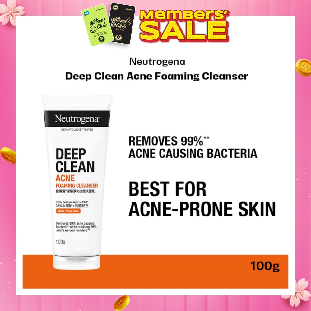 Neutrogena® Deep Clean® Acne Foam Cleanser is a refreshing facial cleanser that throughly cleanses excess sebum and dead skin cells to provide long-lasting oil control and help prevent acne problems, giving you consistently clear and shine-free skin.