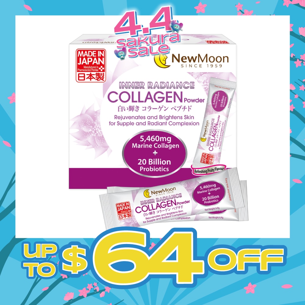 New Moon Inner Radiance Powder is a premium collagen drink with one of the highest collagen content at 5,460mg, low calories with anti-aging properties, formulated and manufactured in Japan.