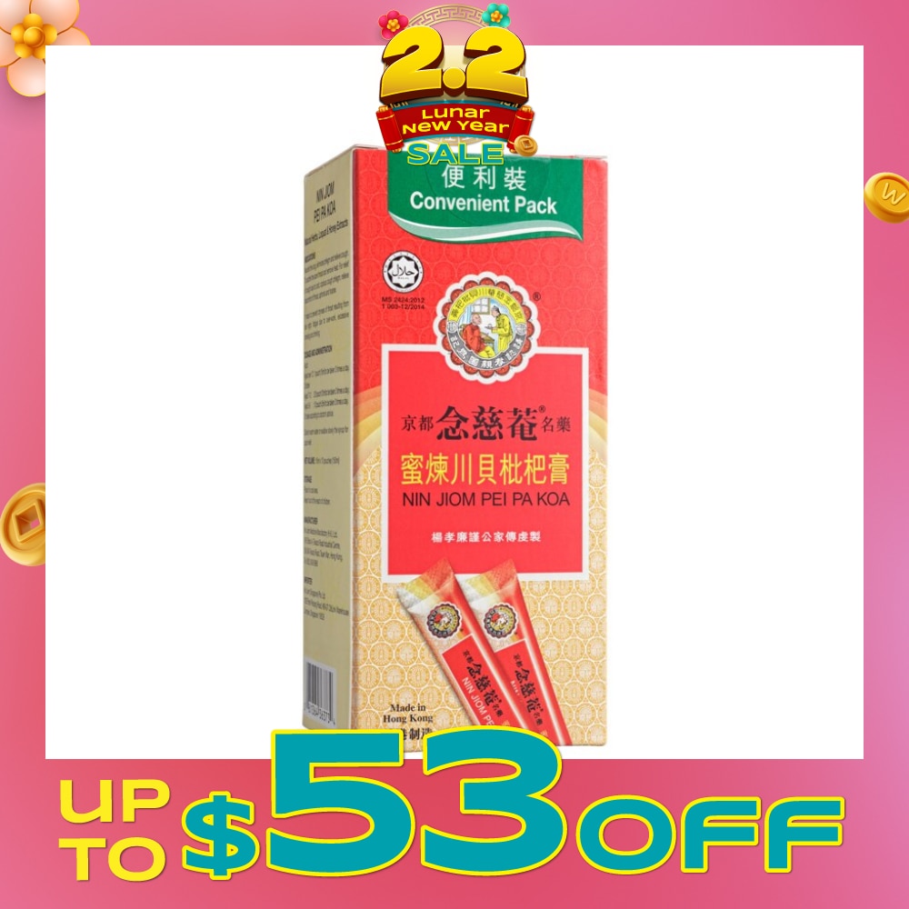 Nin Jiom Pei Pa Koa is a Chinese herbal remedy renowned worldwide to relieve cough, reduce phlegm, soothe sore throat and restore voice loss. Made from 15 natural herbs in Hong Kong under international GMP quality standards, it contains chuan pei to dissolve phlegm and relieve cough, and pi pa ye (loquat leaf) to clear body of heatiness and suppress cough. It can be taken daily. Nin Jiom Pei Pa Koa originated more than a century ago during the Qing dynasty. Available in more than 20 countries including the USA, it has been trusted by generations and continues to be a top brand because of its effectiveness and pleasant taste.