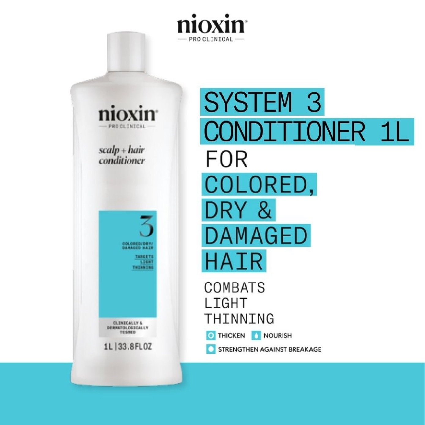 Nioxin System 3 Conditioner is designed for dry, damaged, color-treated hair with light thinning. Clinically and dermatologically tested, it is designed to amplify hair texture and strengthen resilience, resulting in thicker, fuller hair.