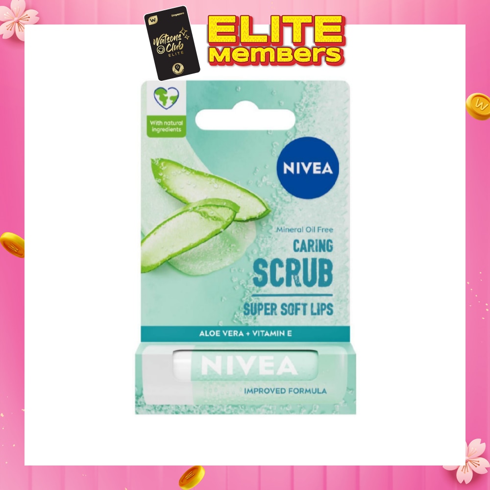 NIVEA Aloe Vera Caring Lip Scrub - Formulated with Vitamin E and organic Aloe Vera contains natural origin exfoliating particles which dissolve after rubbing your lips together. No need to wipe off the scrub particles! Softly exfoliates leaving lips feeling cared for.