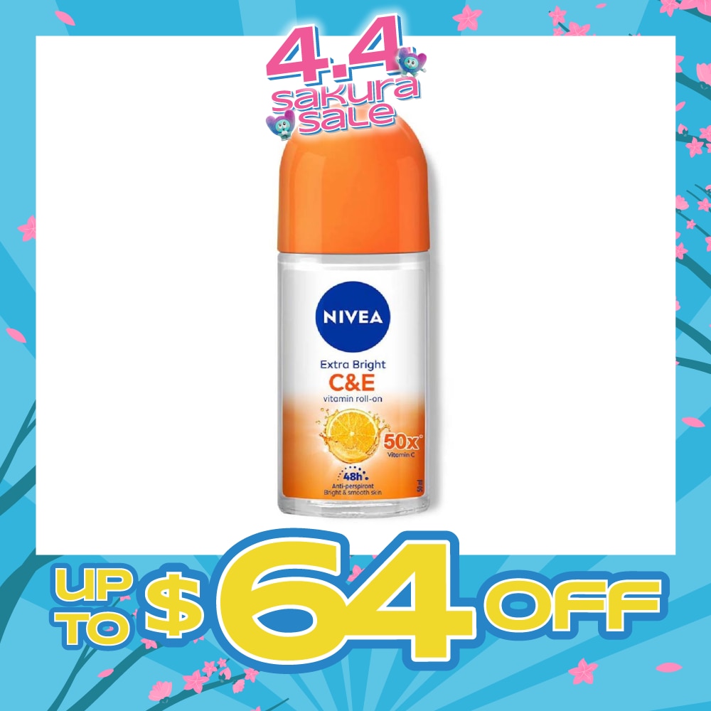 NIVEA Extra Bright C&E Vitamin Roll On Deodorant (Lasting Fragrance + Repair & Protect with Power 5X Radiance + Silky Smooth Skin) 50ml