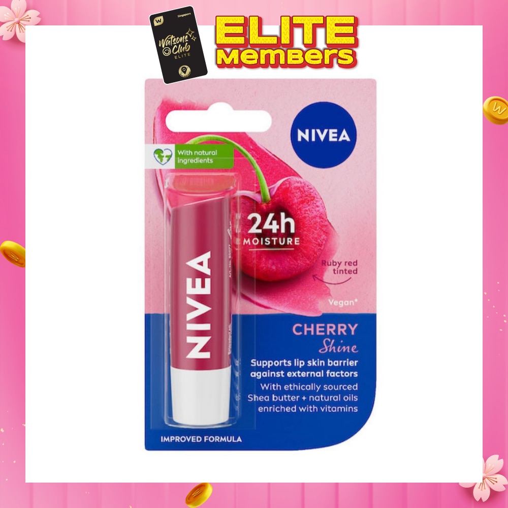 Make your lips the star with NIVEA Lipcare Cherry. It provides long-lasting moisture, giving you beautiful, cared-for lips with a trendy high-gloss look for being out and about or partying.