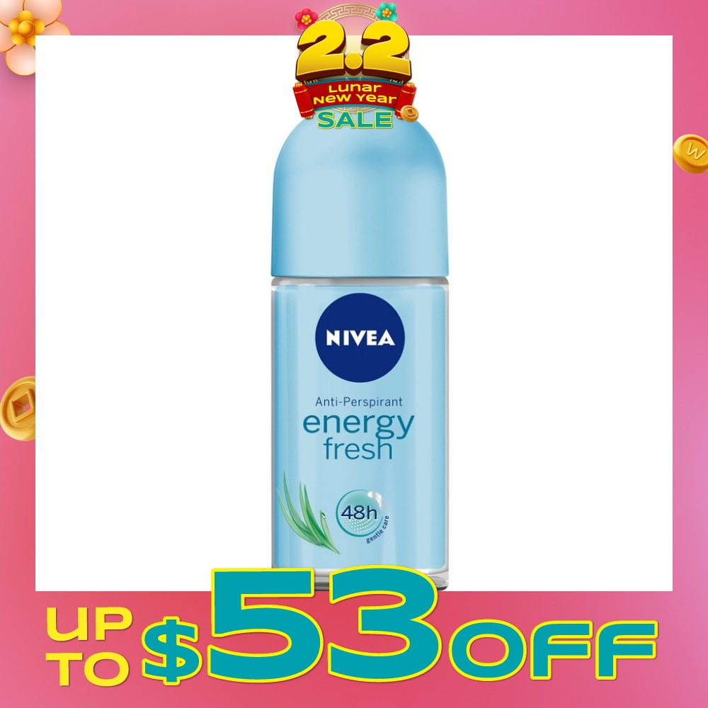 Nivea Energy Fresh Roll-on Deodorant with lemongrass extracts give you freshness all day long. This deodorant provides up to 48 hours of reliable protection against sweat and body odour with care for your underarm skin.