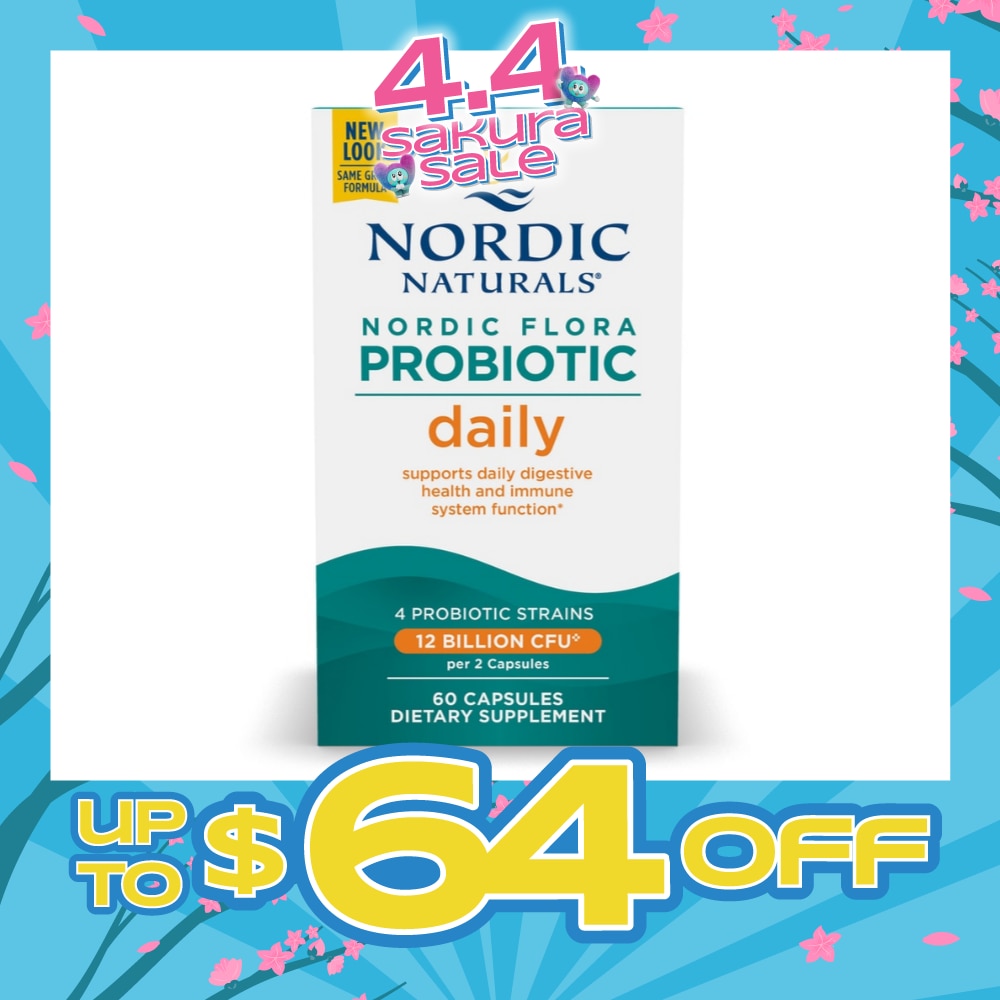 Nordic Naturals Flora Probiotic Daily offers four probiotic strains which include he probiotic powerhouse Lactobacillus acidophilus DDS-1®, plus prebiotic FOS. These research-supported strains survive passage through the GI tract to provide reliable support for digestive wellness and immune health.