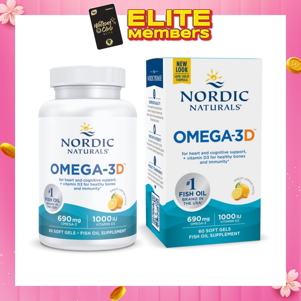 NORDIC NATURALS Omega-3D + Vitamin D3 Dietary Supplement Softgel 1000mg Lemon (For Cognition + Immune + Bone Support) 60s