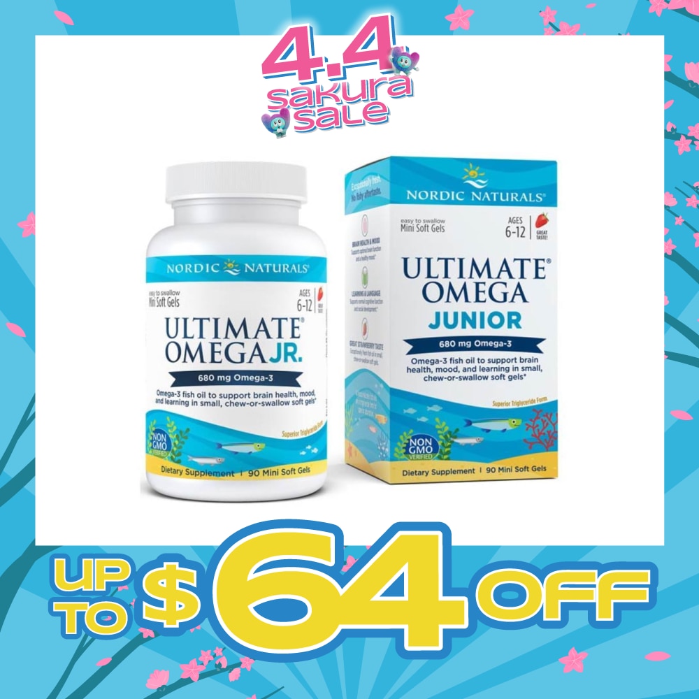 NORDIC NATURAL Ultimate Omega Junior Dietary Supplment Mini Softgel Strawberry Flavor Suitable for Kids Age 6 to 12yrs old (To Support Brain Health Mood & Learning) 90s