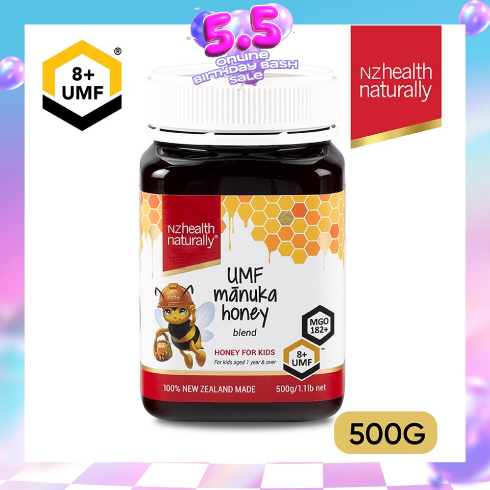 NZ HEALTH NATURALLY Manuka Honey Blend UMF 8+ For Kids Aged 1 Year & Over (For Immune, Digestive Support & Relief of Mouth Ulcers & Sore Throat) 500g