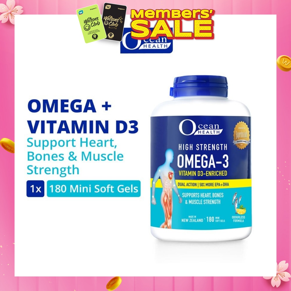 High Strength Omega-3 Vitamin D3-Enriched Mini Softgel (For Heart, Bones & Muscle Strength + Odourless + Mini Odourless Soft Gel + Halal) 180s
