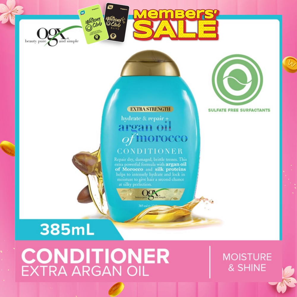 OGX Hydrate + Repair Argan Oil of Morocco Extra Strength Conditioner: This potent blend of extra strength argan oil of Morocco plus silk proteins helps repair even the most severely dry, damaged strands, drenching them with hydration, strengthening from within, and creating soft, seductive, silky tresses.
