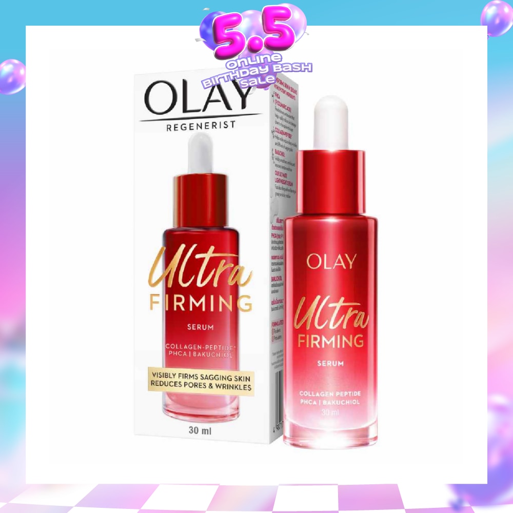 See firmer and smoother skin from day 1 with Olay Ultra Firming Serum. After 1 day, visibly fades pores. After 14 days, visibly reduces deep wrinkles. After 28 days, visibly firms sagging skin.