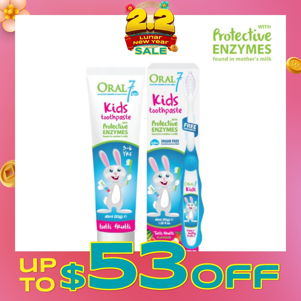 Comes with a free soft-bristled Oral7 children’s toothbrush