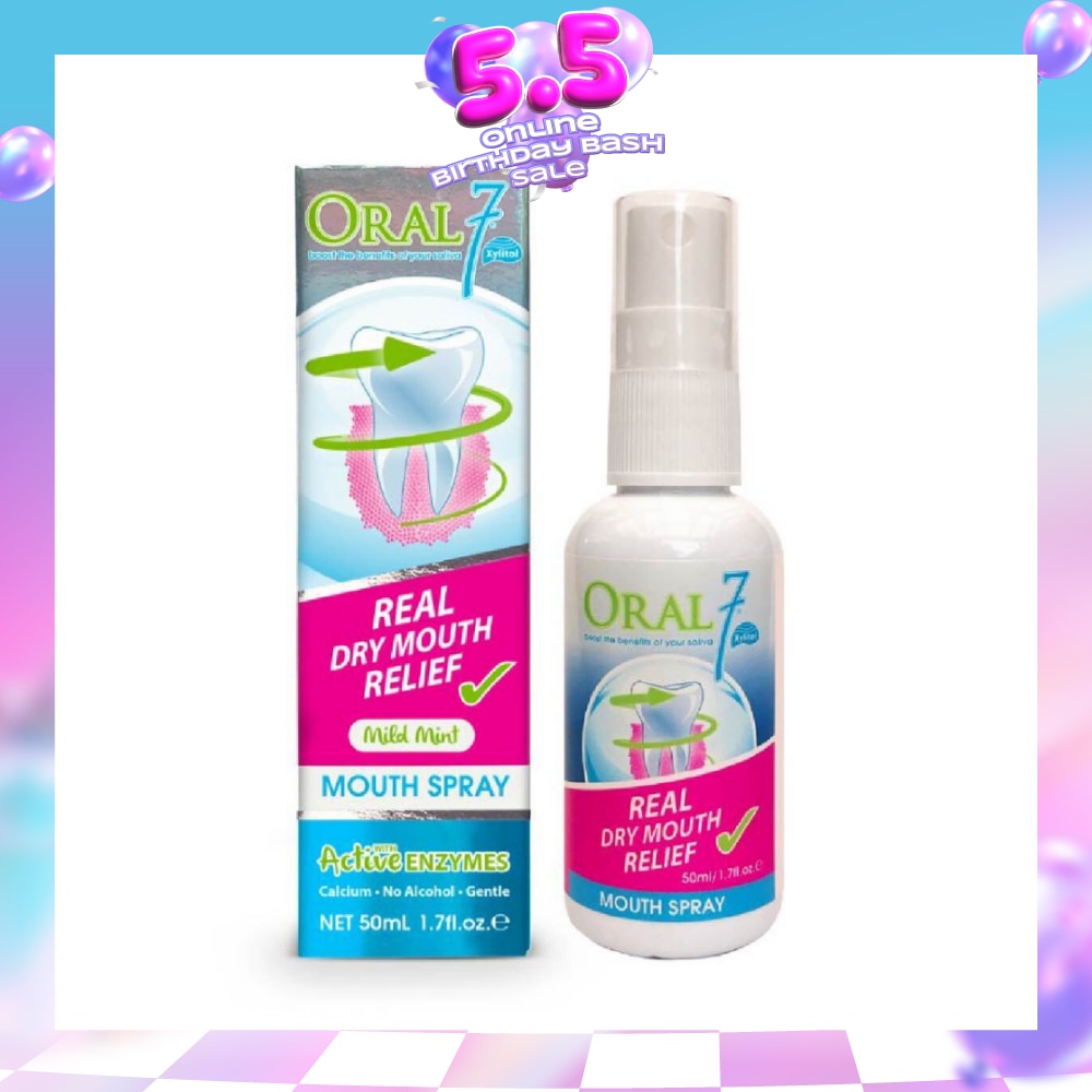 Oral 7 Mouth Spray is convenient to carry with for fresh breath on-the-go, helps soothe and protect dry mouth tissue against minor irritations. Contains Active Enzyme Formula to help inhibit odour causing bacteria, promote gum health and reinforce mouth's own defence system, providing lasting antimicrobrial protection without use of any chemicals. With active enzymes, freshens breath and protects naturally.