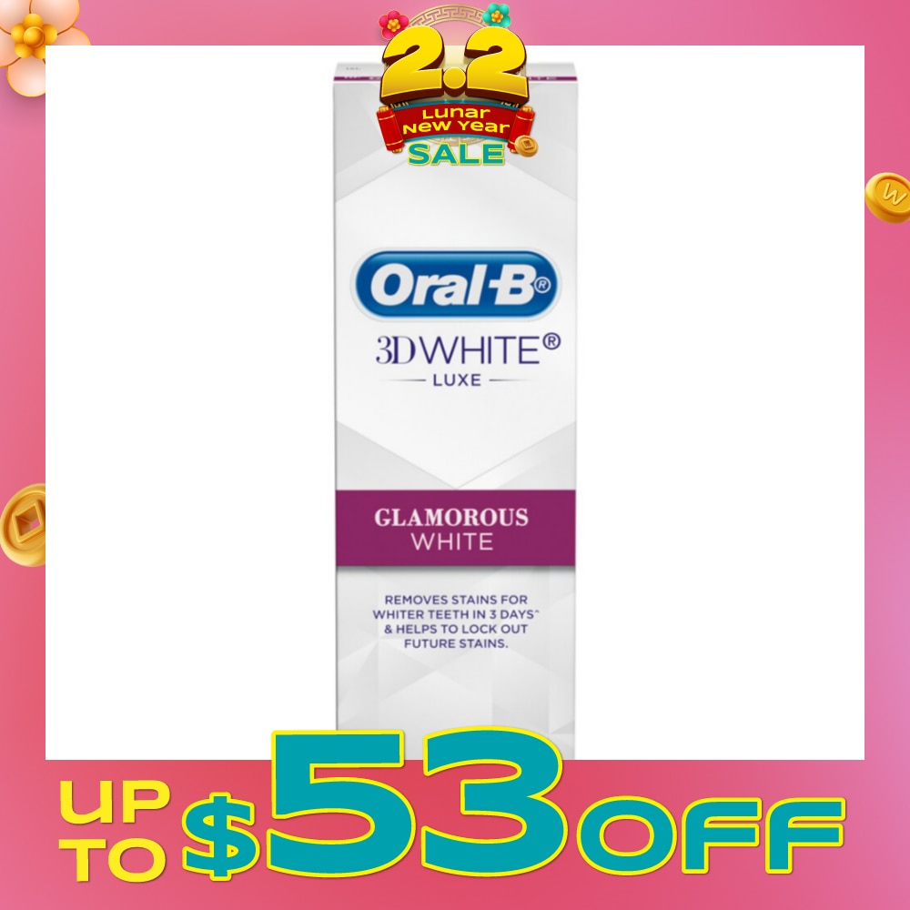 Oral-B 3D White Luxe Glamorous White toothpaste with advanced whitening technology, removes stains for whiter teeth in 3 days^