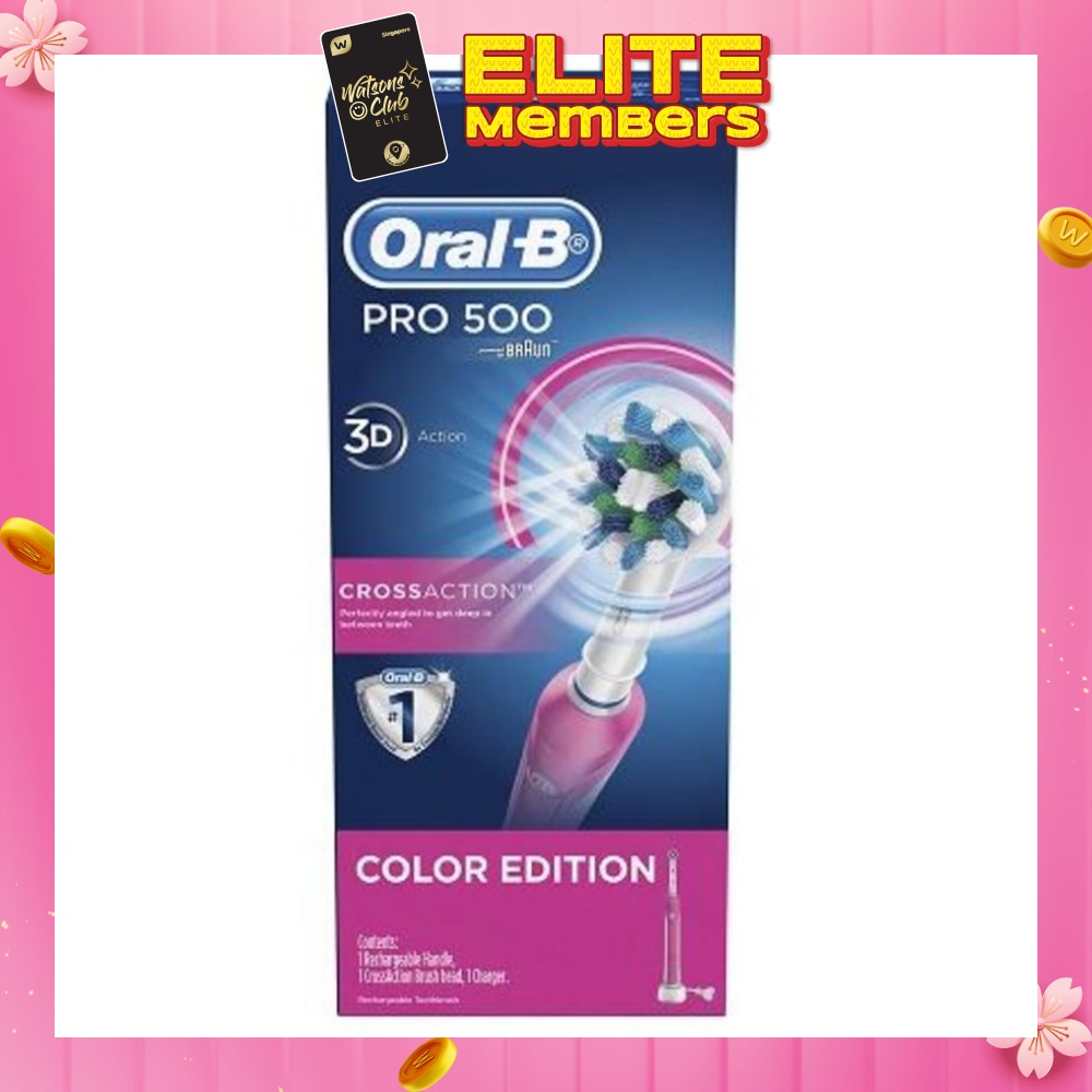 ORAL-B Pro 500 Pink CrossAction Electric Toothbrush Powered by Braun