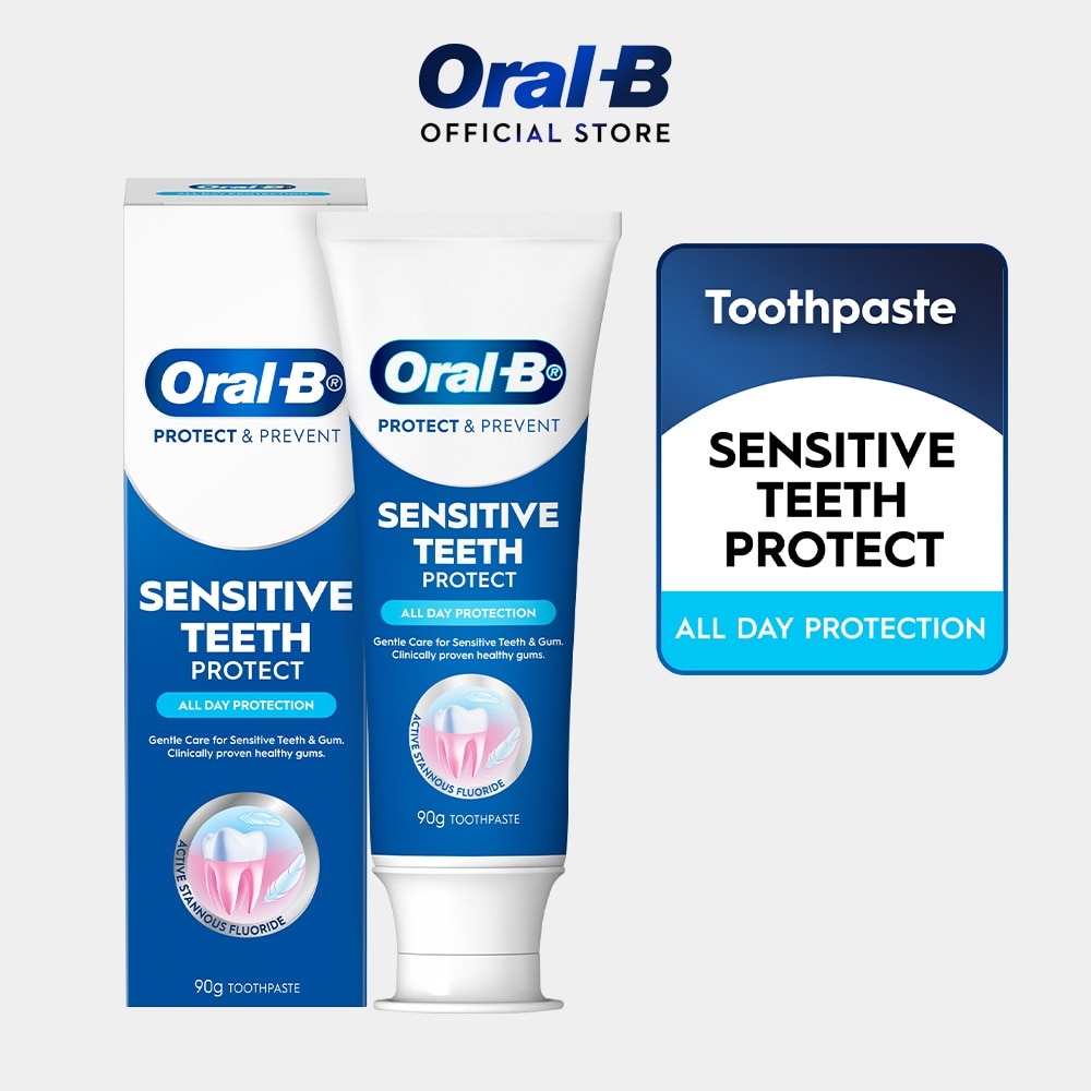 Oral-B Sensitive Teeth Protect All Day Protection toothpaste provides immediate relief from sensitivity pain* and strengthens gums for clinically proven healthy gums
