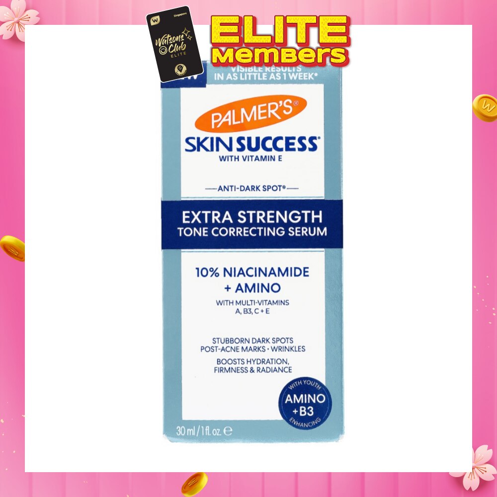 Palmer's ® Skin Success ® Extra Strength Tone Correcting Serum is formulated with a highly efficacioius 10% concentration of Niacinamide and powerful youth enhancing ingredients : Amino Acids, Vitamin C, Retinol and Hyaluronic Acid for radiant, younger looking skin. Visibly improves post-acne scars, stubborn discoloration, fine lines, freckles, uneven skin tone and aging skin. Dermatologist approved , Non-comedogenic, suitable for sensitive skin. 48 hour moisture.