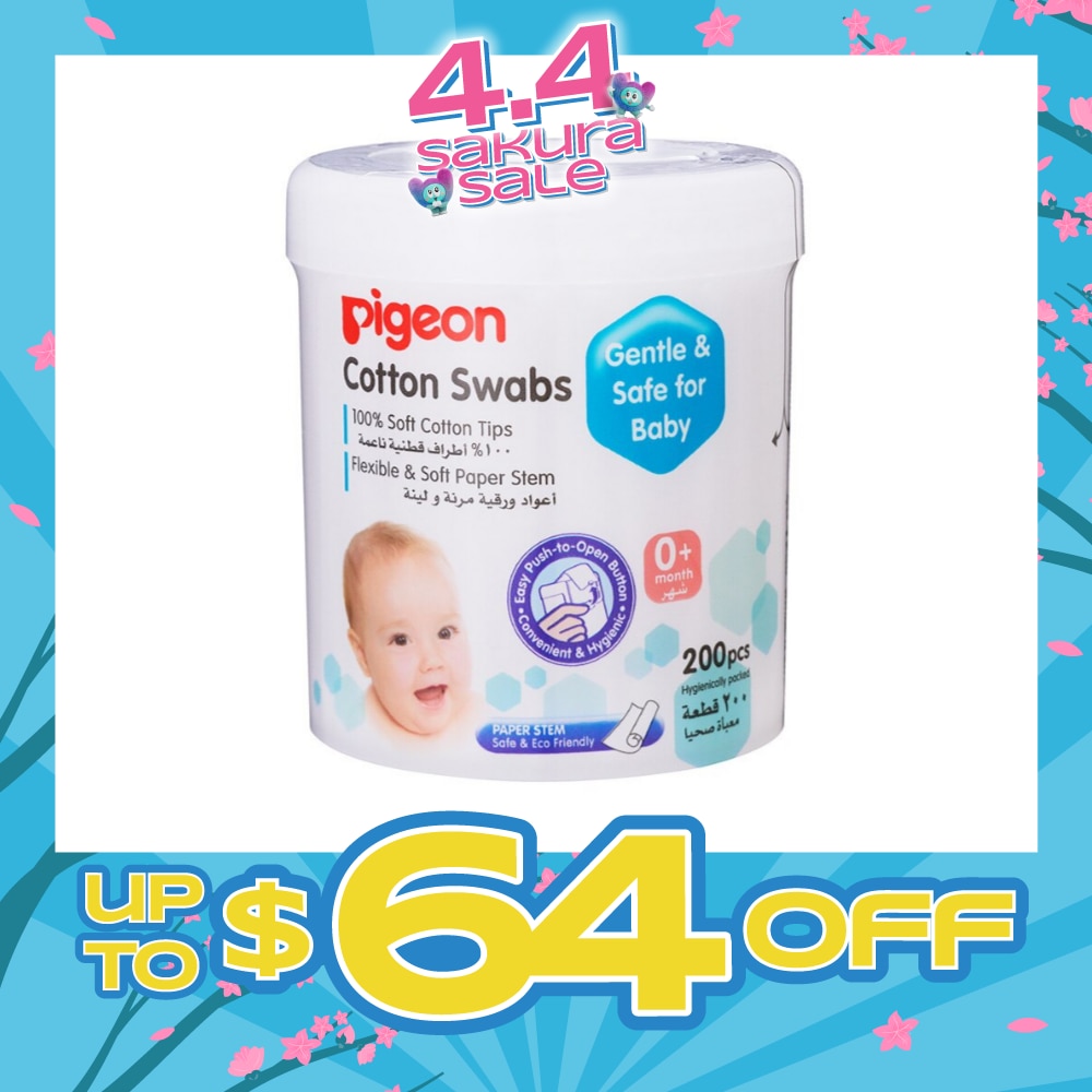 PIGEON 100% Cotton Swab Flexible & Soft Paper Stem (Safe for Baby) 200s