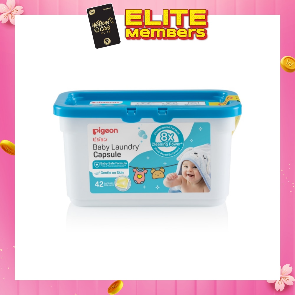 Remove the guesswork and messy detergent spills when tackling baby’s ever-growing pile of laundry. Pigeon Baby Laundry Capsule’s concentrated formula has 8x cleaning power and contains natural enzymes targeted to breakdown and remove tough stains commonly found on babies and toddlers such as dirt, food stains, milk, spit ups and nasty diaper leaks.