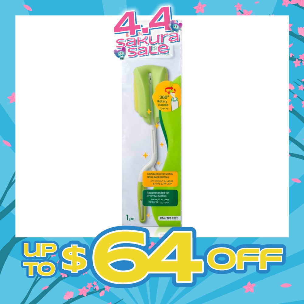 360° rotary handle for thorough cleaning of plastic nursing bottles.