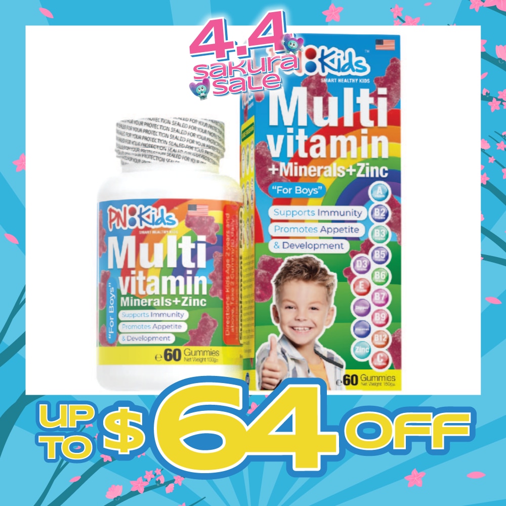 PNKids Multi Vitamin + Mineral for Boys and Girls, provide your kids with key essential nutrients that they need during their growing years. A special blend that contains citrus pectin for better vitamin absorption. Plus, it comes in great tasting fruit flavors and fun shapes that keeps your kids coming back for more!