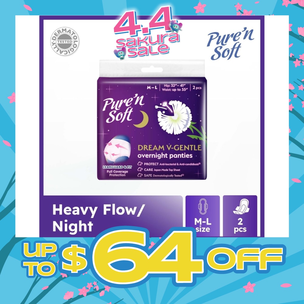PURE N SOFT Dream V-Gentle Overnight Panties M-L (Hip 32" - 41" & Waist Up To 35") 2s