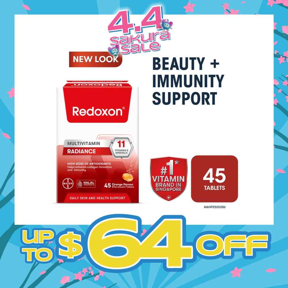 Redoxon Vita Immune contains high strength 1000mg of Vitamin C & 10 other vitamins, minerals and anti-oxidants which reinforce the body barriers, supports the immune cells and nourishes skin cells.
