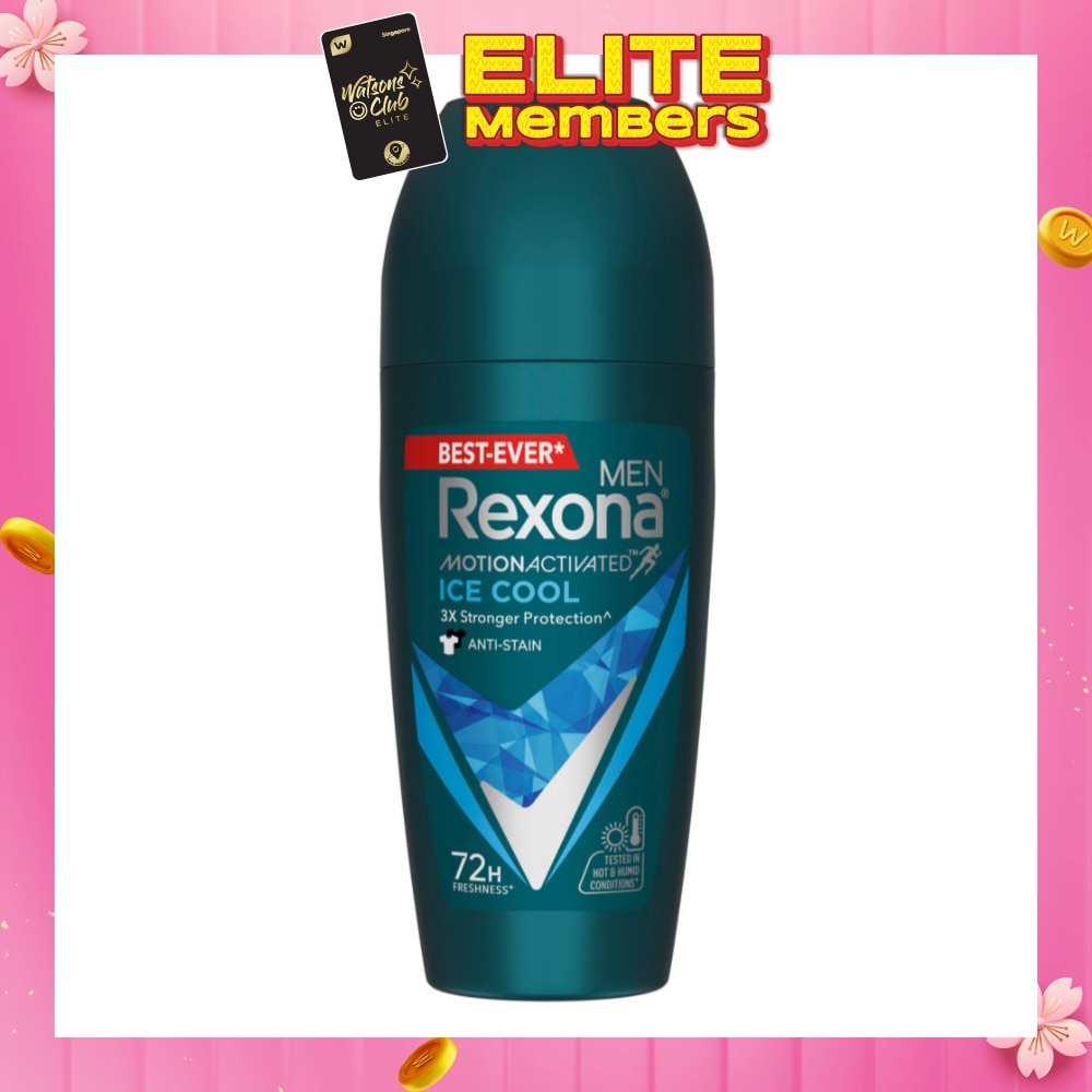 REXONA Men Motion Activated Ice Cool Antiperspirant Deodorant Roll On (Anti Stain & A Cooling Mint Scent) 45ml