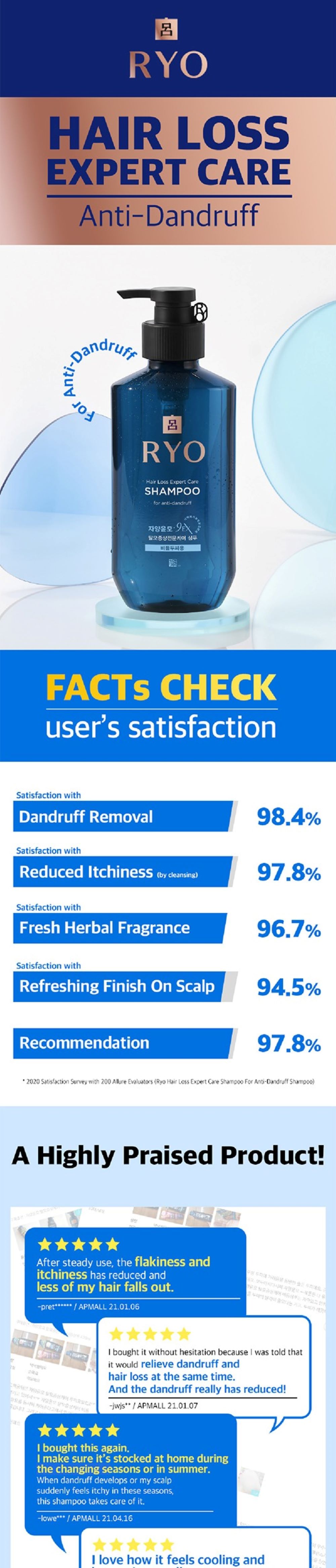 RYO Hair Loss Expert Care Shampoo For Anti Dandruff (With Ginseng Extract + Strengthen Scalp Barrier) 400ml
