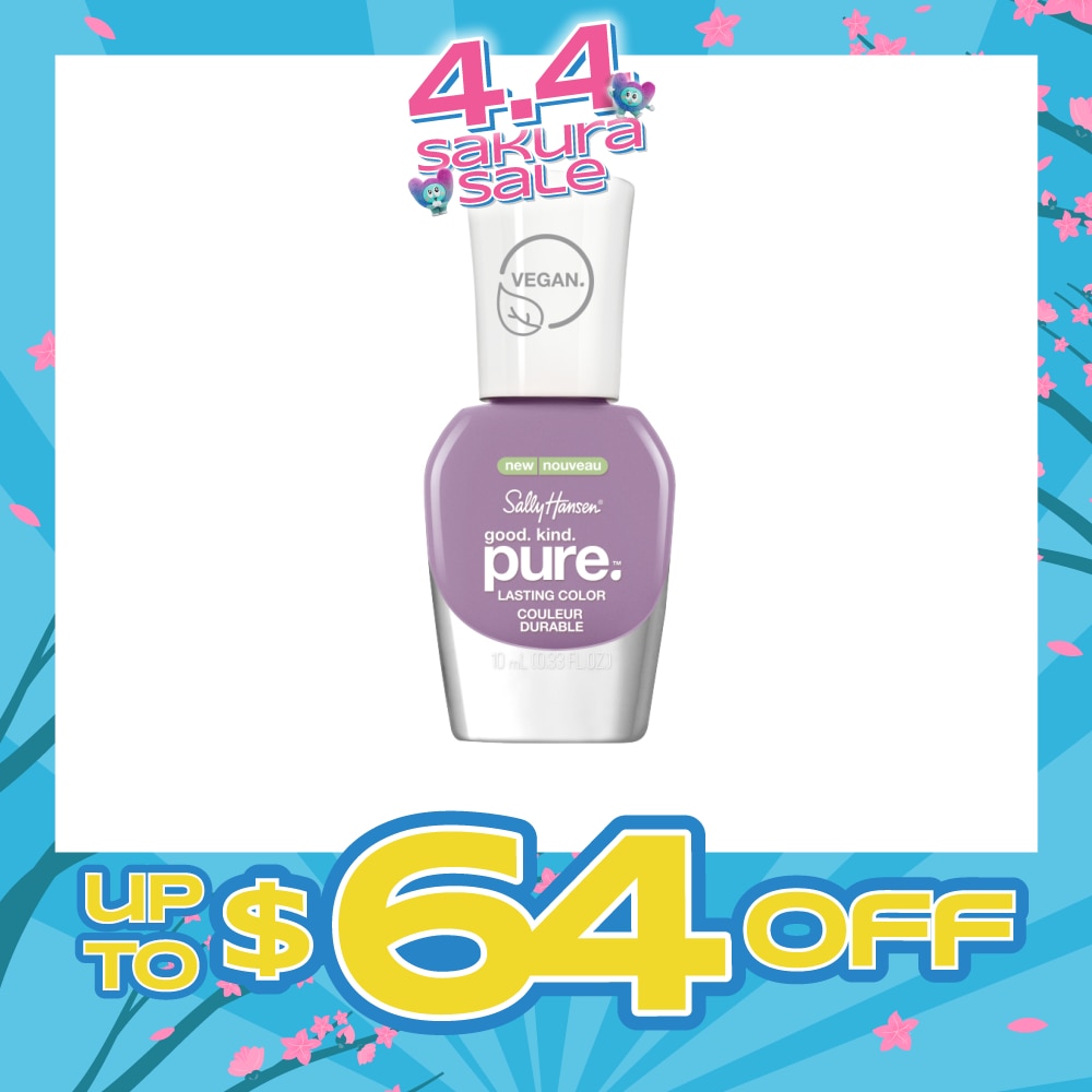 Good. Kind. Pure.® is Sally Hansen's 100% vegan, 16-free* nail polish containing Bamboo and Marine Algae for extra care while you wear. Good. Kind. Pure.® nail polish offers long-lasting 7 days of flawless color and reflective shine without compromise.