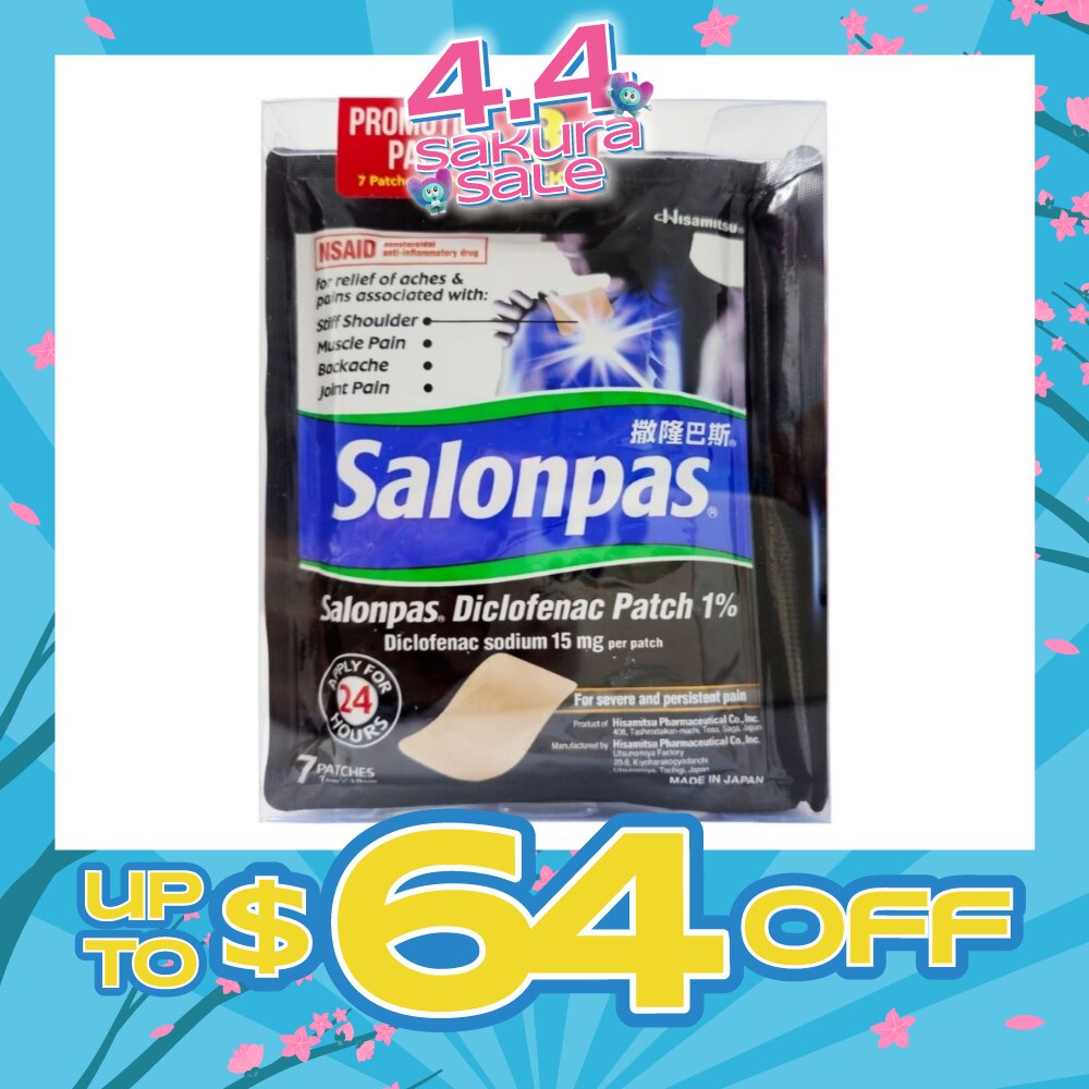 For severe and persistent pain. Salonpas Diclofenac Patch provides relief of aches, pain and inflammation associated with muscle pain and stiff shoulder, backache, bruises, sprains, strains, joint pain, lendons inflammation. Up to 24 hours.
