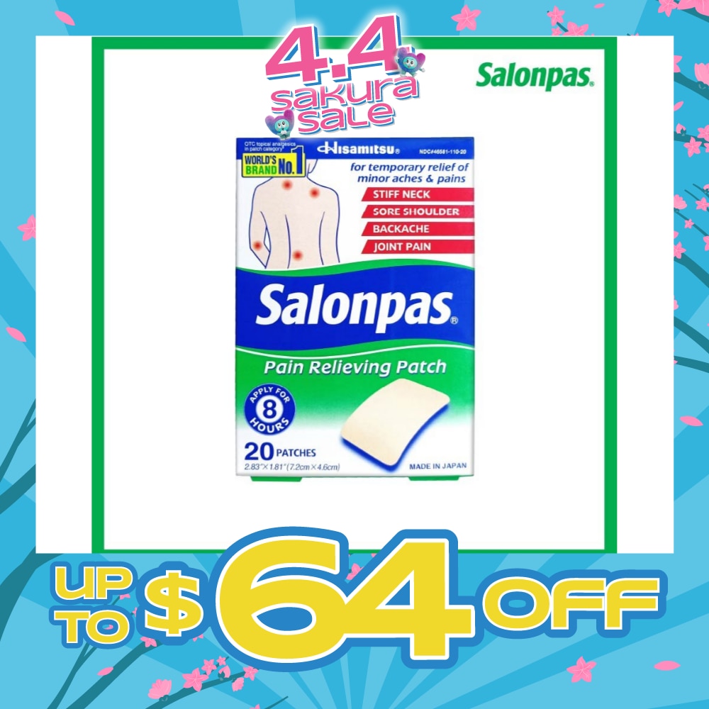 SALONPAS Pain Relieving Patch is the No.1 Pain Relief Patch in Japan. Provide temporary relief of minor aches & pains of stiff neck, sore shoulder, backache, joint pain. Flexible, rounded corner, latex free material. Made in Japan