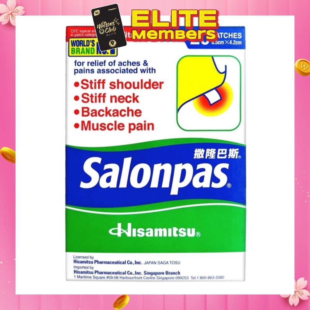 SALONPAS® Pain Relieving Patch is the No.1 Pain Relief Patch in Japan. Provide temporary relief of minor aches & pains of muscles & joints associated with arthritis, simple backache, strains, bruises, sprains. Convenient and versatile size and is easy to apply