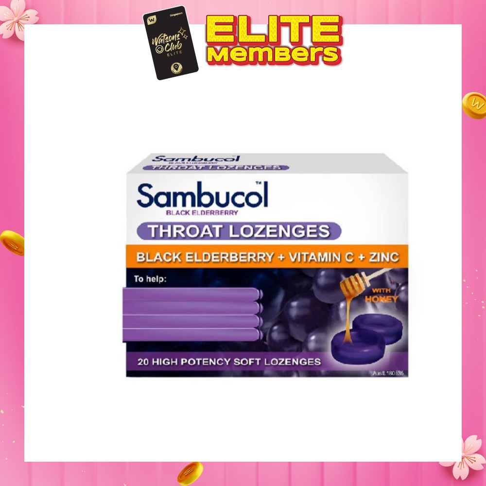 Sambucol throat lozenges with honey combine health promoting and antioxidant rich black elderberries, Vitamin C and Zinc to soothe the throat, support the immune system and general health and well being.