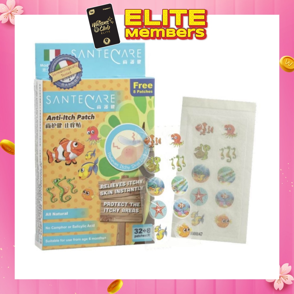 Santecare Anti-Itch Patch contains natural herbs that rapidly relieves and soothes itchiness and discomfort from insect bites and other causes. It is manufactured in Italy by CGMP and ISO9001 certified factory. It is camphor and salicylic acid free and passed dermatological tests. Suitable for family use, for kids 6 months plus and adults.