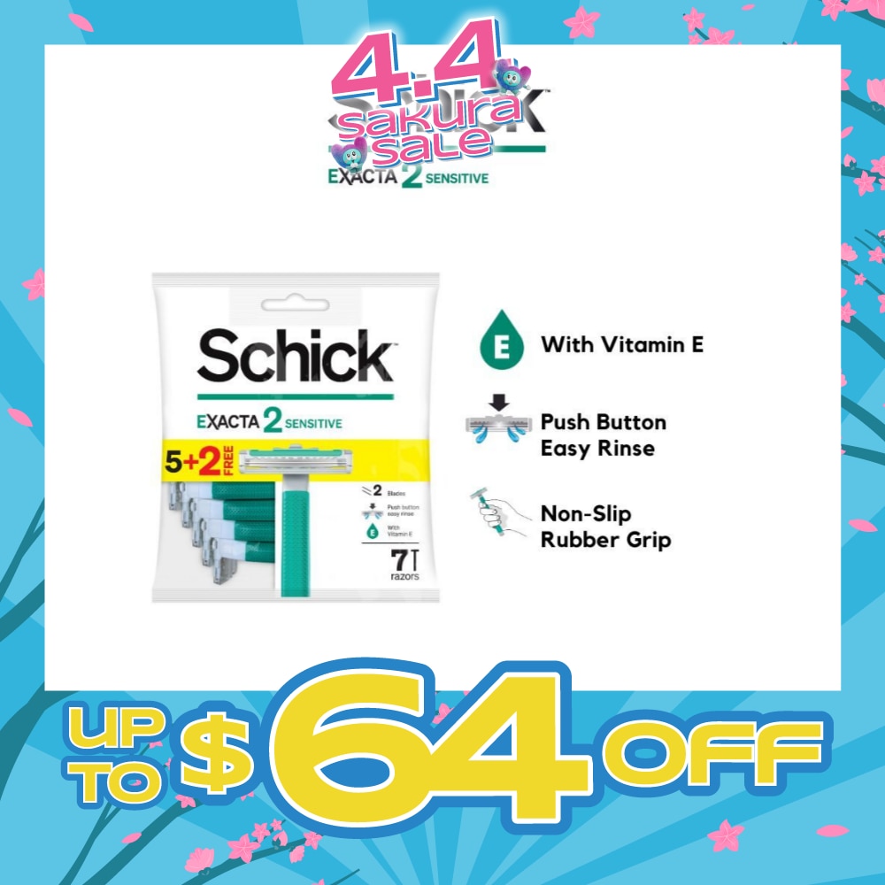 SCHICK Exacta 2 Sensitive Razor (Non-Slip Rubber Grip + with Push Button for Easy Rinse) 7s