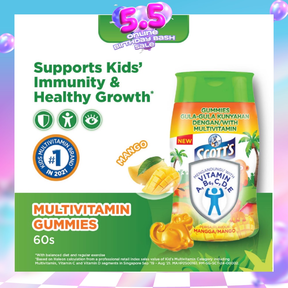SCOTT'S Multivitamins Gummies Mango (Support Immunity + Bone Growth And Healthy Vision for Children) 60s