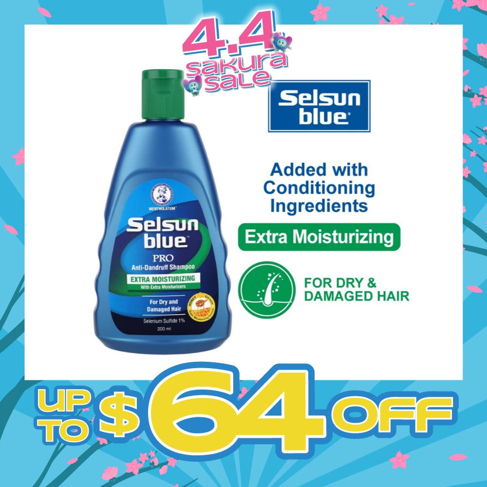 Blue Extra Moist Pro Anti-Dandruff Shampoo (Relieves Dandruff & Itchy Scalp With Selenium Sulfide, Honeyquat 50 & 3 Types of Conditioning Ingredients Suitable For Dry & Damage Hair) 200ml
