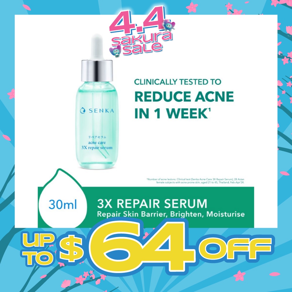 ³Clinical test (Senka Acne Care 3X Repair Serum, after 8 weeks), 27 Asian female subjects, aged 20-45, Thailand, Feb-Apr’24